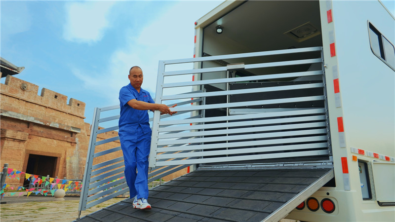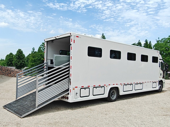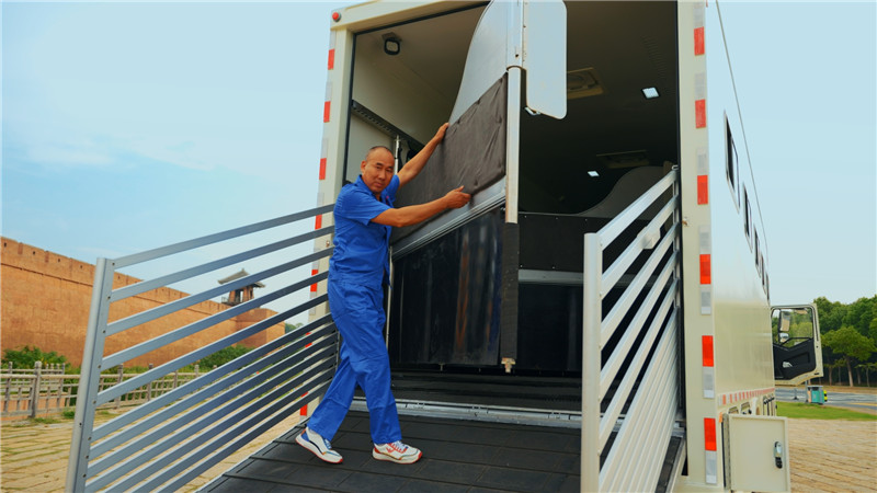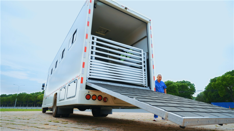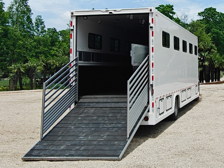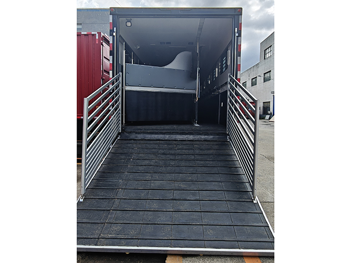 液壓門系統(tǒng) | 天順牌產(chǎn)品:液壓后翻門,采用延時(shí)電機(jī),帶緊急手動操作裝置,箱體尾部有液壓升降踏板,方便馬匹上下(內(nèi)部鋁合金),軍用品質(zhì)液壓系統(tǒng)(海格曼),坡度平緩 |